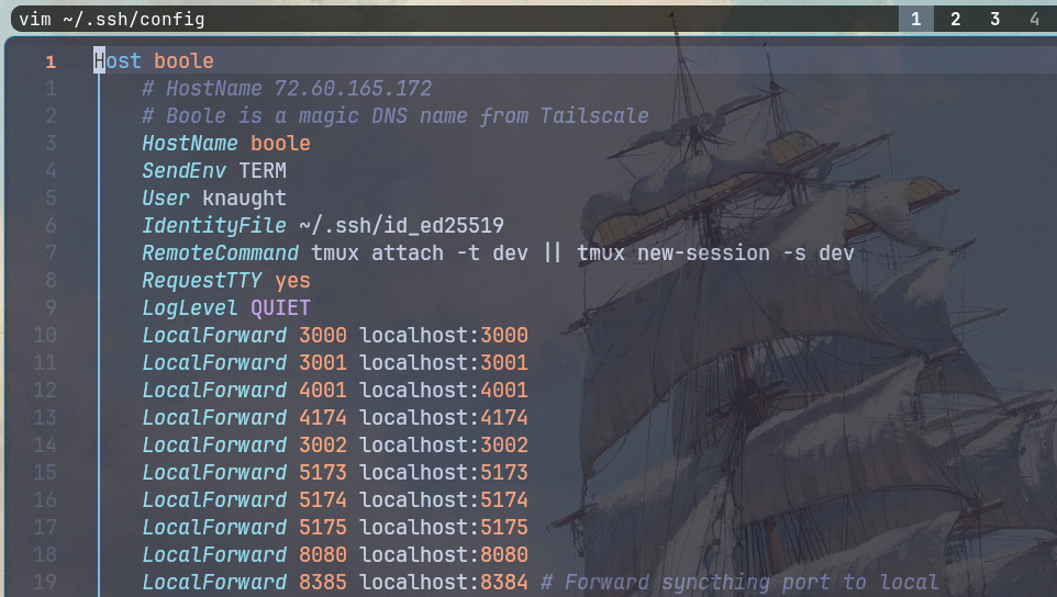 RemoteCommandto automatically attach to my existing Tmux dev session or create a new one if it doesn’t exist.Port Forwarding: I use port forwarding to be able to access services running on specific ports on the VPS on my local machine. This lets me preview web apps in my local browser as if they were running on my laptop.