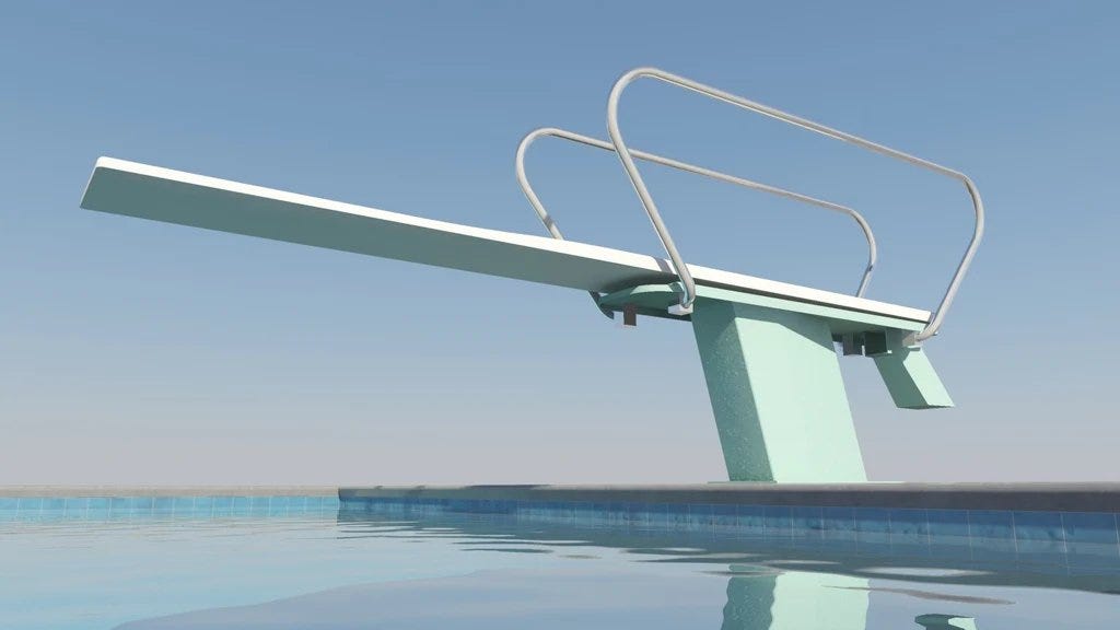 Early in our lives, we’re all standing on the same platform. We’re taking the same classes, applying for the same entry-level roles, and following the same “best practices.” The diving board is short. If someone jumps, the board barely flexes. Their experience is almost identical to yours, so their advice is high-signal.