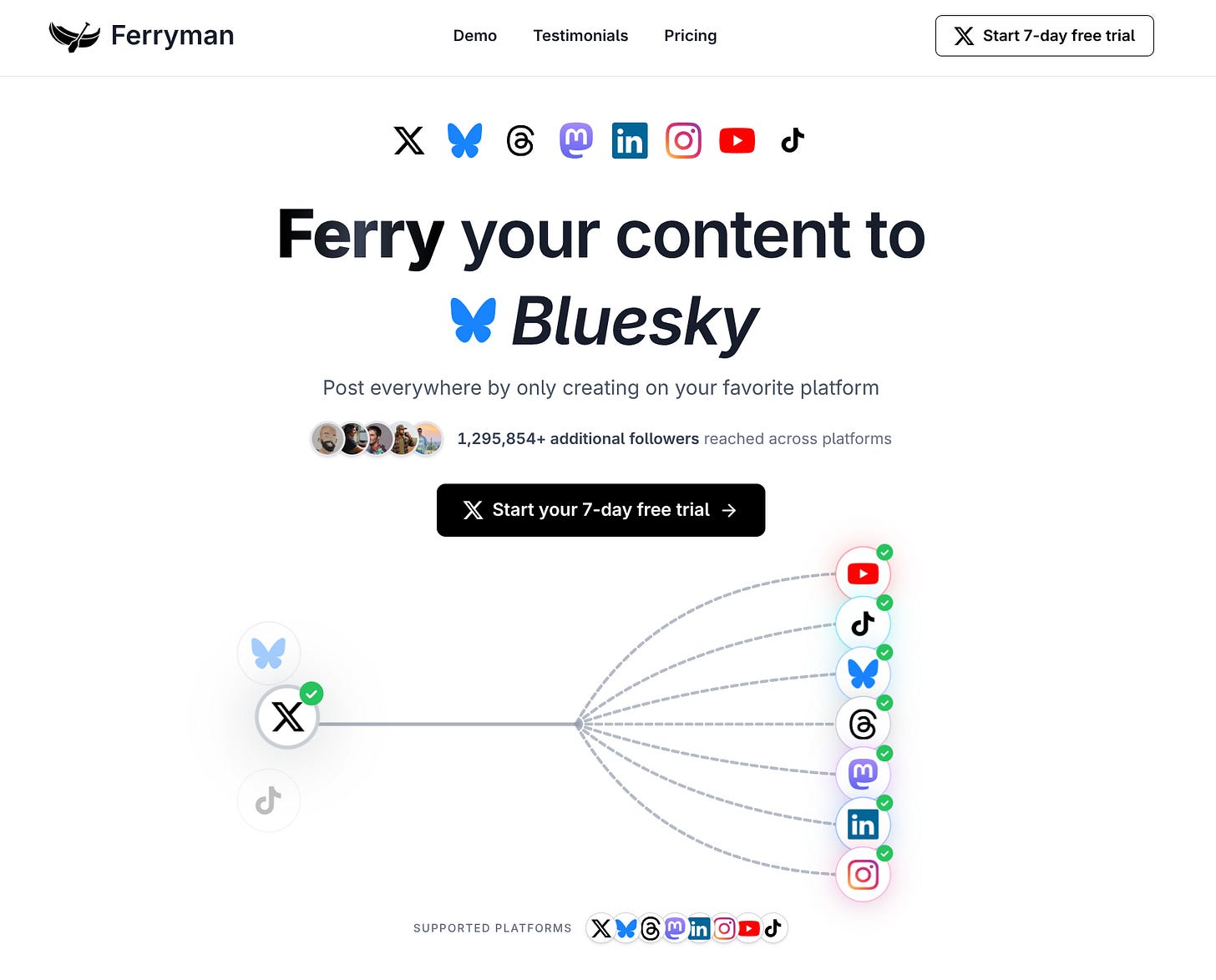 I built Ferryman to solve a simple problem: manual cross-posting is low-leverage work that drains your time. With 8,400+ posts ferried for 330+ users, the system is proven to help you grow on all your socials with zero extra effort. Start scaling your reach automatically. Use code “BREAKSTUFF” for 30 days free of the Creator plan.