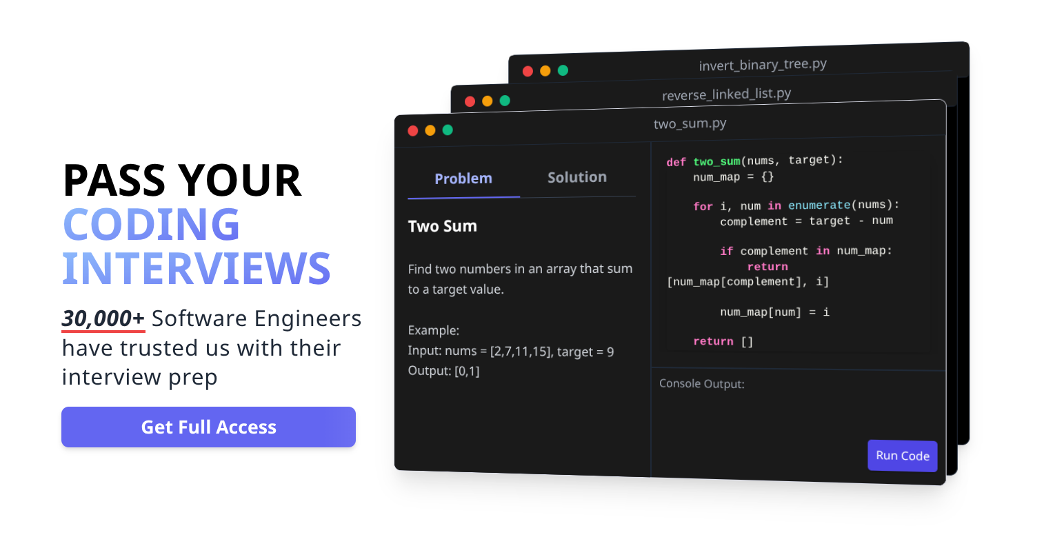 If you’re struggling to prepare for technical interviews sign up for the platform I created to help 30,000+ people learn how to pass coding interviews — The Daily Byte. Our subscribers have received offers from great companies like Google, Meta, Microsoft, Apple, Uber, Citadel, and many more.