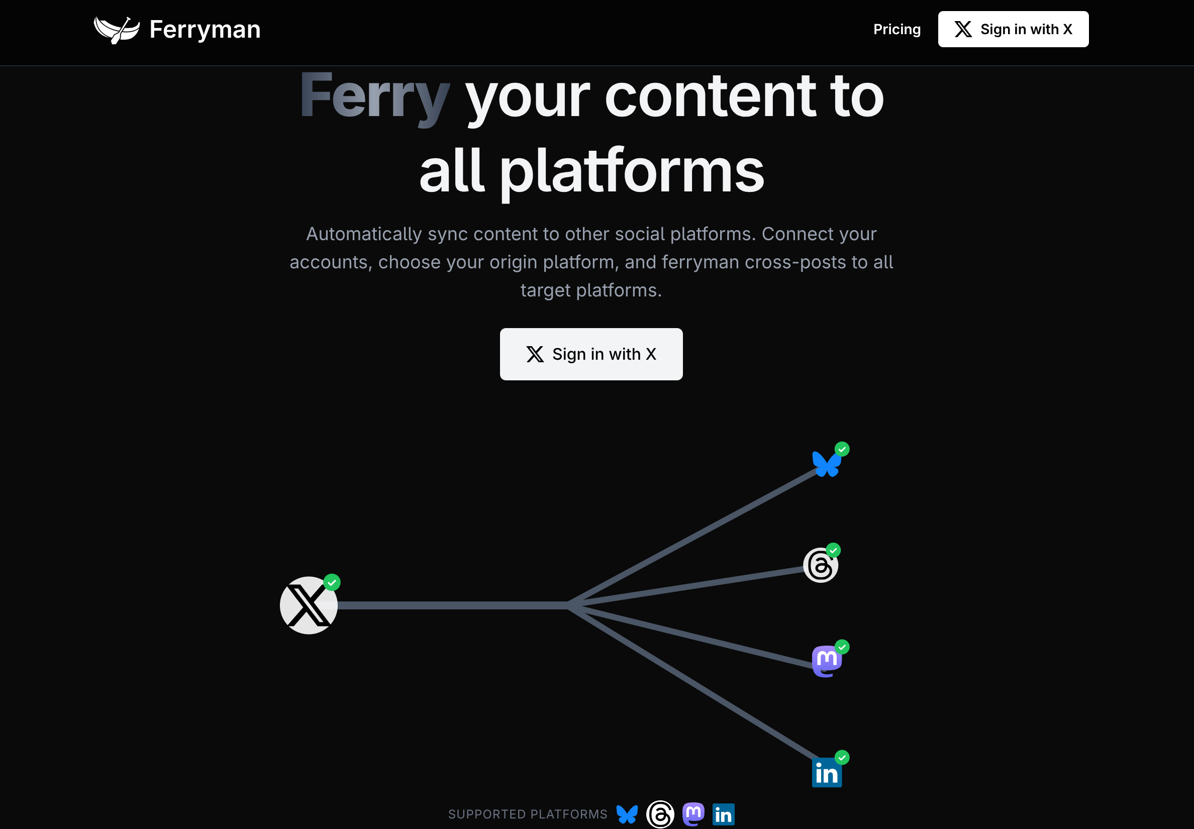 I’m excited to share that Ferryman has already cross-posted over 1,000+ posts for 100+ users. Manual cross-posting is low-leverage work that shouldn’t take up your time. Ferryman handles the distribution to LinkedIn, Threads, Bluesky, and Mastodon automatically, so you can reach every audience without the extra effort. Use code “SWEEKLY” for 30 days free of the Basic monthly subscription.